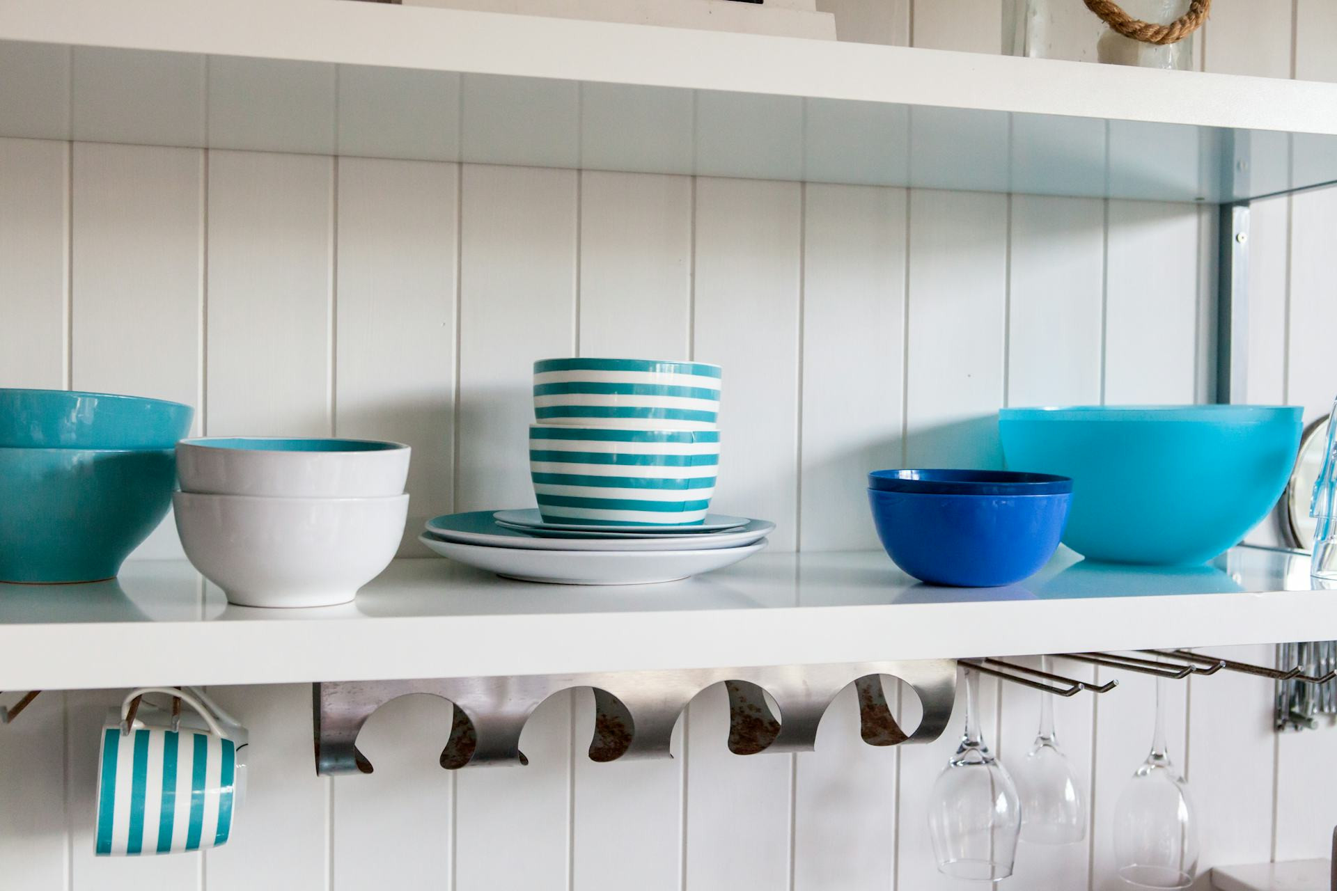 Når du vælger farver til dine hylder, er det en god idé at tage udgangspunkt i køkkenets eksisterende palet. Har du hvide skabe og lyse vægge, kan du tillade dig at gå mere modige veje med stærke farver. I et mørkere køkken kan pasteller eller støvede toner give et elegant og afbalanceret udtryk.
